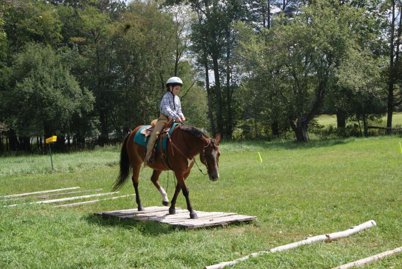 Taylor Tylutke riding "Hawk Hills Princess" over the bridge in Beginner Trail, Fall 2010.