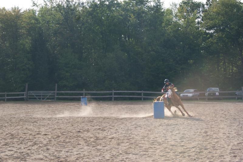 Louis Tylutke and "Blaze" rounding the second barrel in Novice Barrels, Fall 2010.